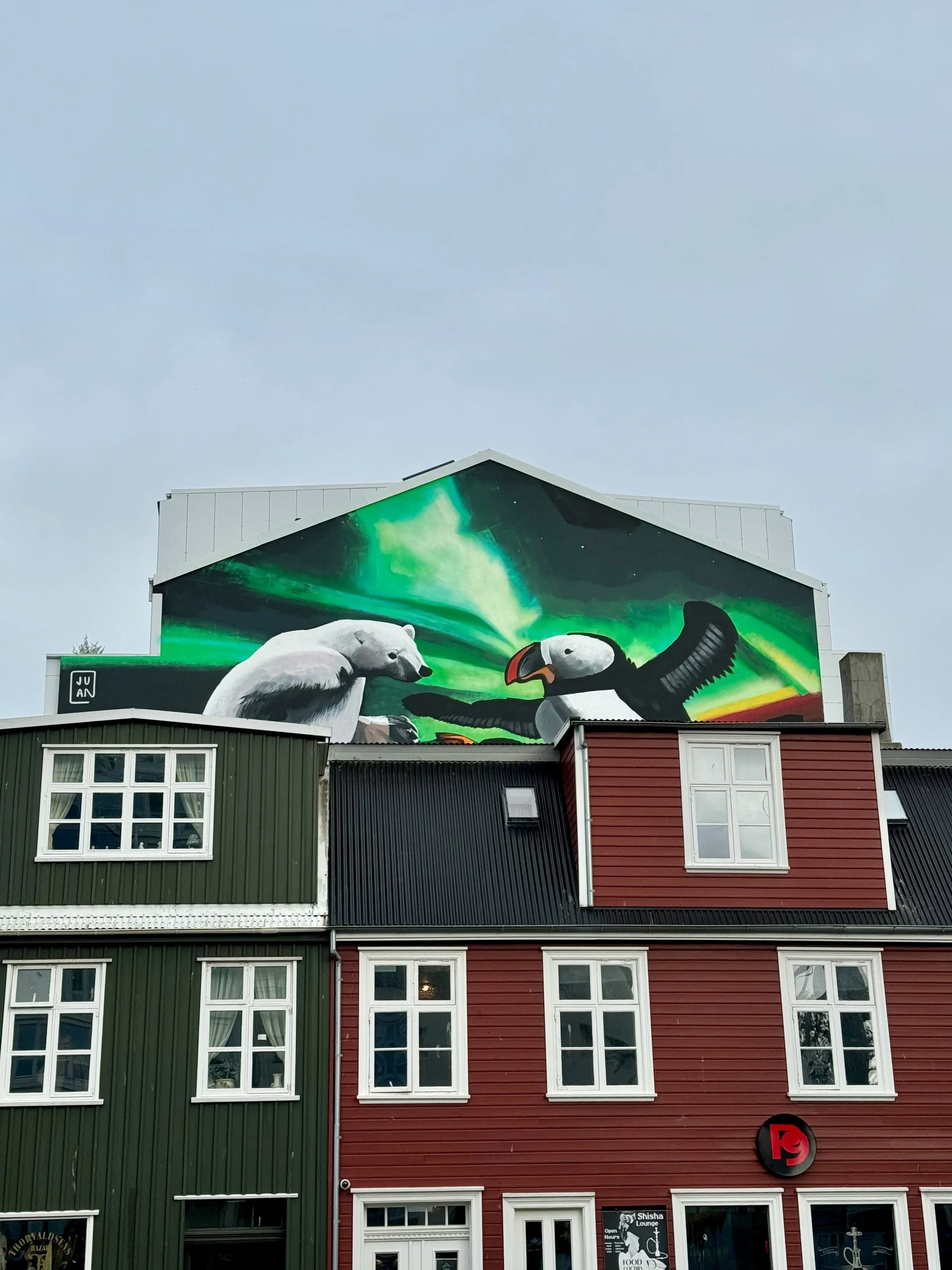 After walking down rainbow road, we began our day of souvenir shopping for family, friends, and co-workers. We then had lunch at another food hall, where I had fish and chips and Dana had a local fish. After that, we went to the concert hall to see the interesting architecture and then headed to the hand-knit store to purchase a lopapeysa. Turns out, the one we went to was closed on Sundays so we had to go back to the downtown one. After shopping a bit, Dana ended up buying me a lopapeysa for my birthday! It was such a nice gift and throughout the rest of the trip ended up being my go to midlayer on almost all days. Unfortunately the store didn’t have one of Dana’s size that she wanted, but I told her I would go to the bigger one the next day to grab her one.